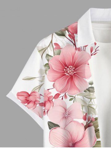 Plus Size Flowers Leaf Print Buttons Pocket Hawaii Shirt For Men - White - 2xl