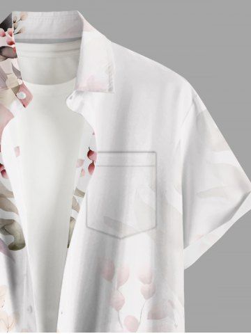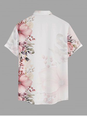 Plus Size Flowers Leaf Print Buttons Pocket Hawaii Shirt For Men - Pink - Xl