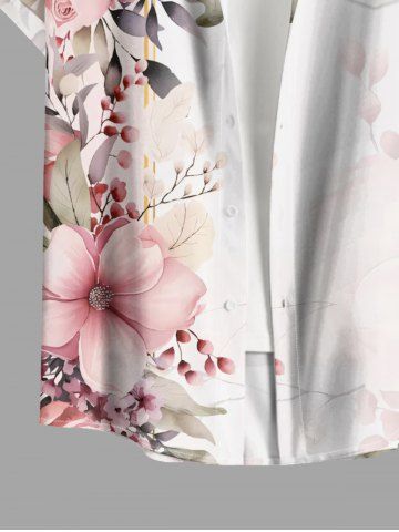 Plus Size Flowers Leaf Print Buttons Pocket Hawaii Shirt For Men - Pink - 6xl