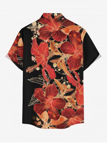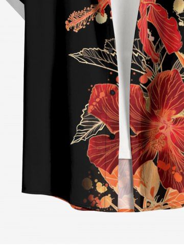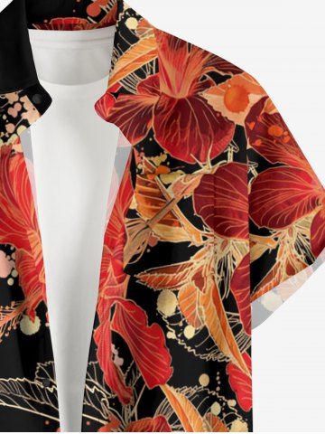 Plus Size Flowers Leaf Print Buttons Pocket Hawaii Shirt For Men - Black - M