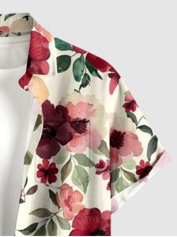 Plus Size Flowers Leaf Print Buttons Pocket Hawaii Shirt For Men - Deep Red - 4xl