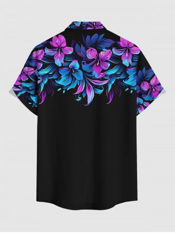 Plus Size Flowers Leaf Print Buttons Pocket Hawaii Shirt For Men - Black - 5xl