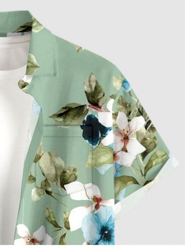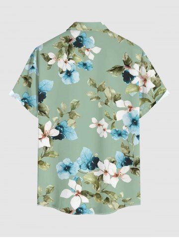 Plus Size Flowers Leaf Print Buttons Pocket Hawaii Shirt For Men - Light Green - M