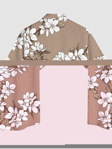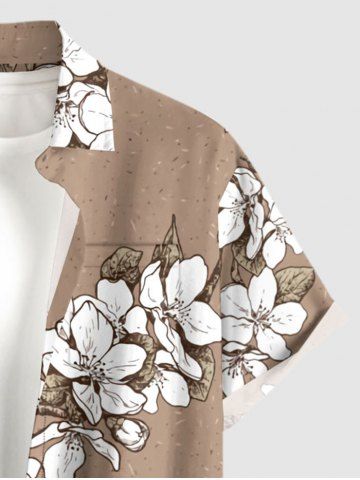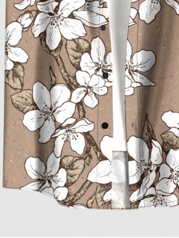 Plus Size Flowers Leaf Print Buttons Pocket Hawaii Shirt For Men - Tan - M