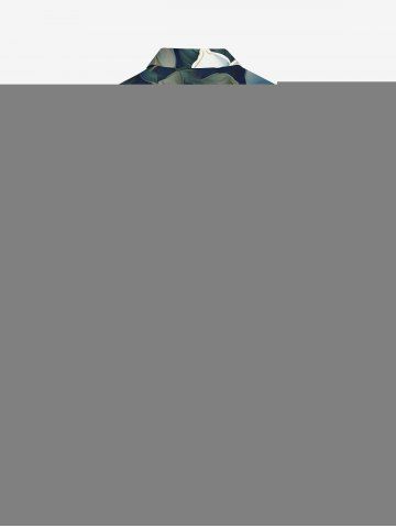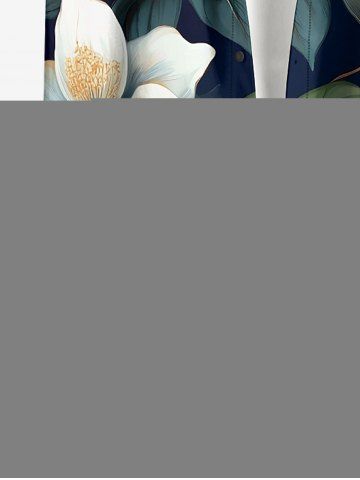 Plus Size Flowers Leaf Print Buttons Pocket Hawaii Shirt For Men - Midnight Blue - M