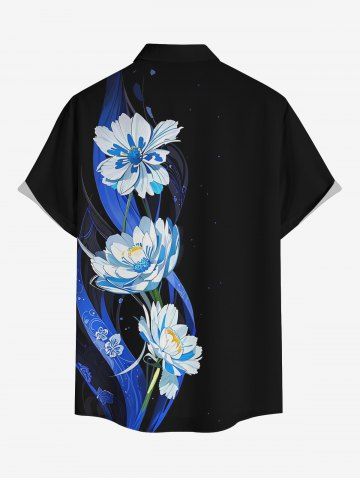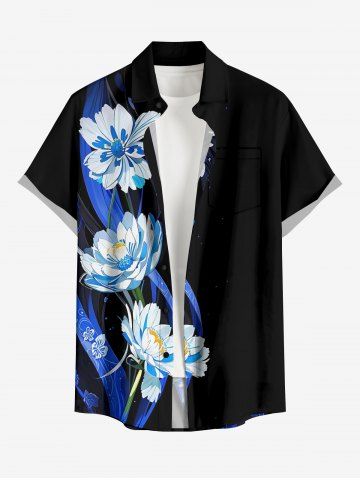 Plus Size Flowers Leaf Print Buttons Pocket Hawaii Shirt For Men - Black - 3xl