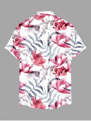 Plus Size Flowers Leaf Print Buttons Pocket Hawaii Shirt For Men - Light Pink - 2xl