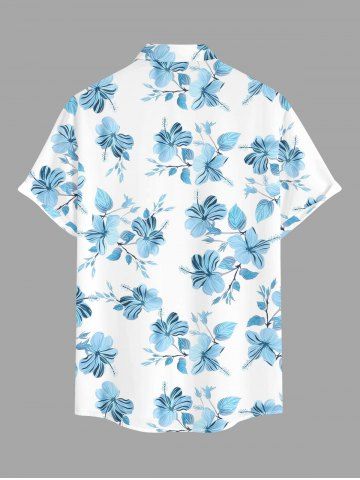Plus Size Flowers Leaf Print Buttons Pocket Hawaii Shirt For Men - Light Blue - S