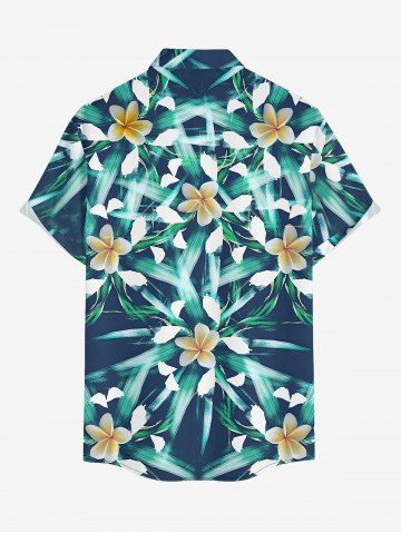 Plus Size Flowers Leaf Print Buttons Pocket Hawaii Shirt For Men - Deep Blue - 3xl