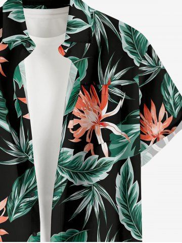 Plus Size Flowers Leaf Print Buttons Pocket Hawaii Shirt For Men - Black - 3xl