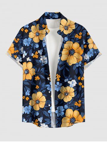 Plus Size Flowers Leaf Print Buttons Pocket Hawaii Shirt For Men - Black - 2xl