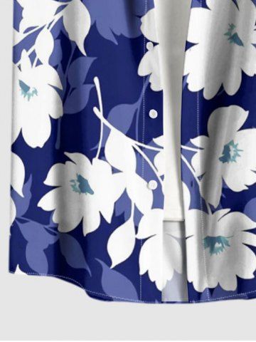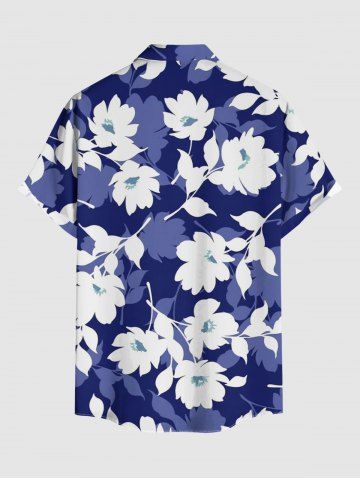 Plus Size Flowers Leaf Print Buttons Pocket Hawaii Shirt For Men - Blue - 4xl