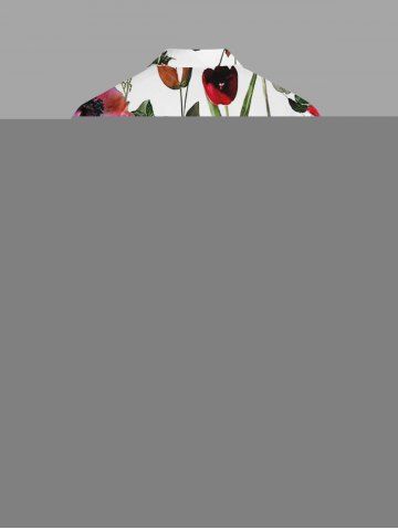 Plus Size Flowers Leaf Print Buttons Pocket Hawaii Shirt For Men - Light Pink - M