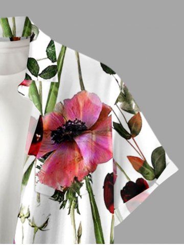 Plus Size Flowers Leaf Print Buttons Pocket Hawaii Shirt For Men - Light Pink - L