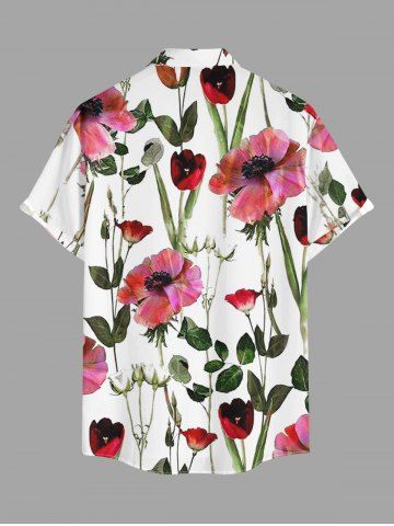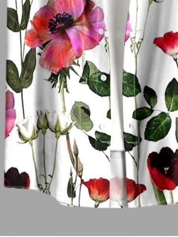Plus Size Flowers Leaf Print Buttons Pocket Hawaii Shirt For Men - Light Pink - Xl