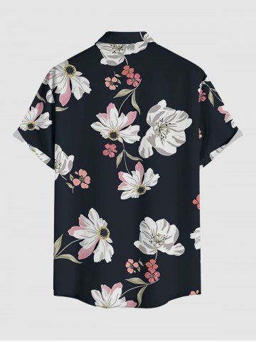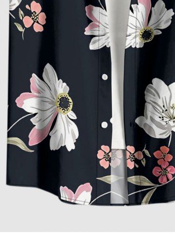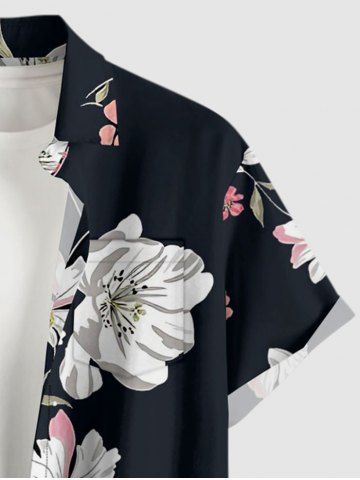 Plus Size Flowers Leaf Print Buttons Pocket Hawaii Shirt For Men - Black - 6xl