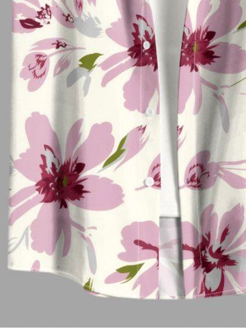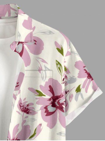 Plus Size Flowers Leaf Print Buttons Pocket Hawaii Shirt For Men - Pink - 3xl