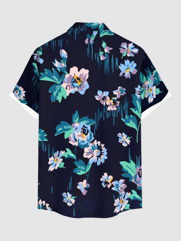 Plus Size Flowers Leaf Print Buttons Pocket Hawaii Shirt For Men - Black - 3xl
