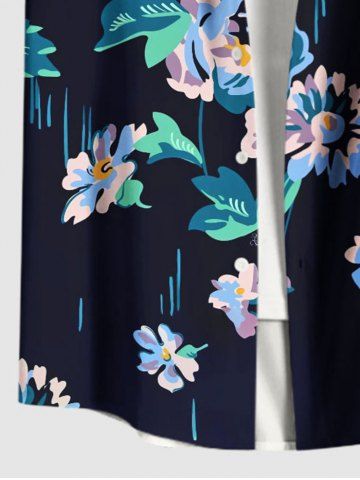 Plus Size Flowers Leaf Print Buttons Pocket Hawaii Shirt For Men - Black - 5xl