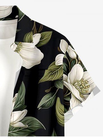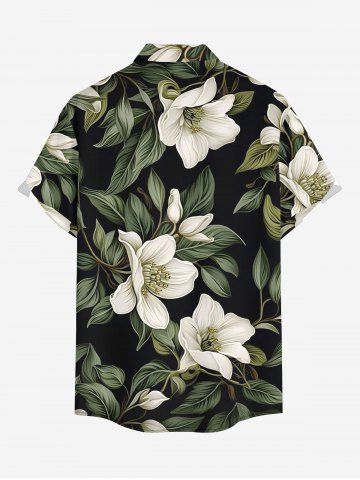 Plus Size Flowers Leaf Print Buttons Pocket Hawaii Shirt For Men - Plant Green - 5xl