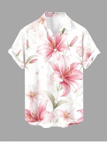 Plus Size Flowers Leaf Print Buttons Pocket Hawaii Shirt For Men - Pink - S