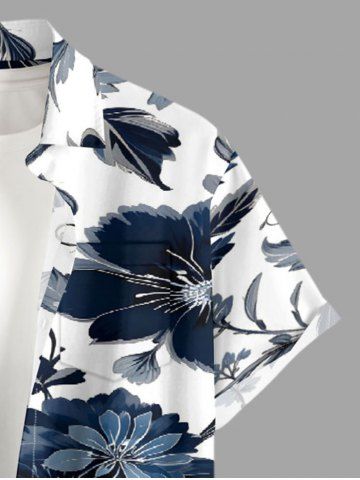Plus Size Flowers Leaf Print Buttons Pocket Hawaii Shirt For Men - Deep Blue - L