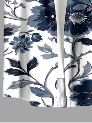 Plus Size Flowers Leaf Print Buttons Pocket Hawaii Shirt For Men - Deep Blue - Xl