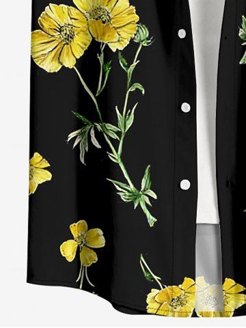 Plus Size Flowers Leaf Print Buttons Pocket Hawaii Shirt For Men - Black - L