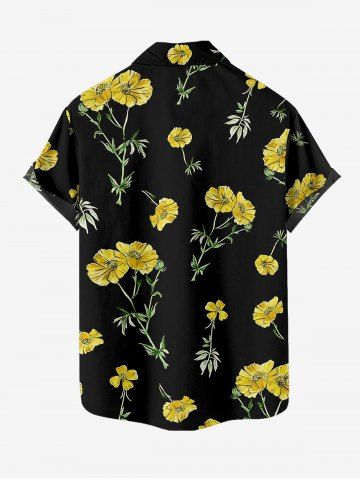 Plus Size Flowers Leaf Print Buttons Pocket Hawaii Shirt For Men - Black - 3xl