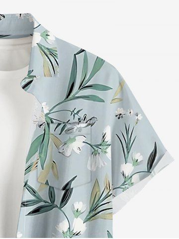 Plus Size Flowers Leaf Print Buttons Pocket Hawaii Shirt For Men - Blue Gray - 4xl