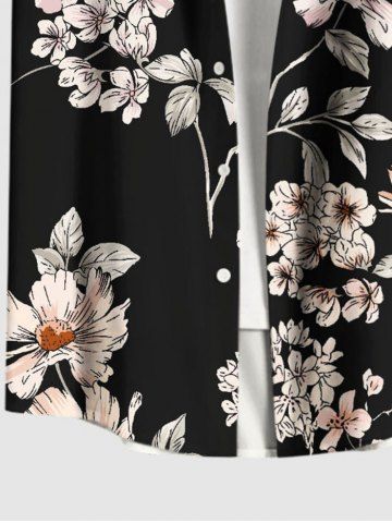 Plus Size Flowers Leaf Print Buttons Pocket Hawaii Shirt For Men - Black - Xl
