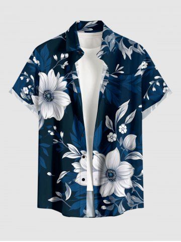Plus Size Flowers Leaf Print Buttons Pocket Hawaii Shirt For Men - Cadetblue - 3xl