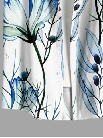 Plus Size Flowers Leaf Print Buttons Pocket Hawaii Shirt For Men - Light Blue - M