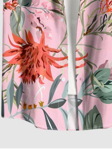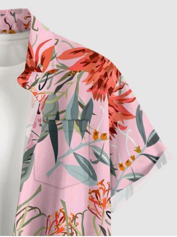 Plus Size Flowers Leaf Print Buttons Pocket Hawaii Shirt For Men - Pink - M
