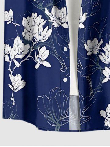 Plus Size Flowers Leaf Print Buttons Pocket Hawaii Shirt For Men - Deep Blue - M