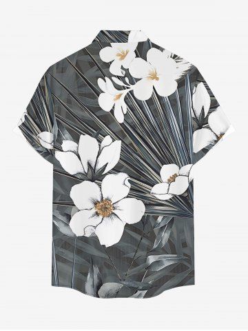 Plus Size Flowers Leaf Print Buttons Pocket Hawaii Shirt For Men - Dark Gray - 2xl