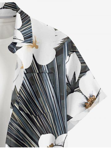 Plus Size Flowers Leaf Print Buttons Pocket Hawaii Shirt For Men - Dark Gray - 6xl