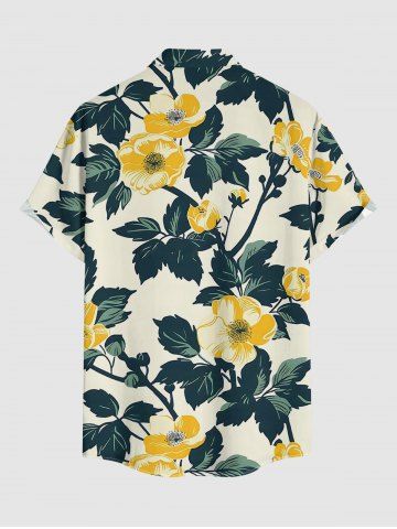 Plus Size Flowers Leaf Print Buttons Pocket Hawaii Shirt For Men - Light Yellow - S