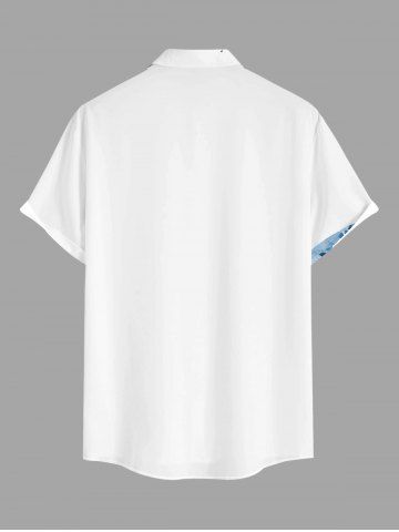 Plus Size Flowers Leaf Print Buttons Pocket Hawaii Shirt For Men - Powder Blue - 4xl