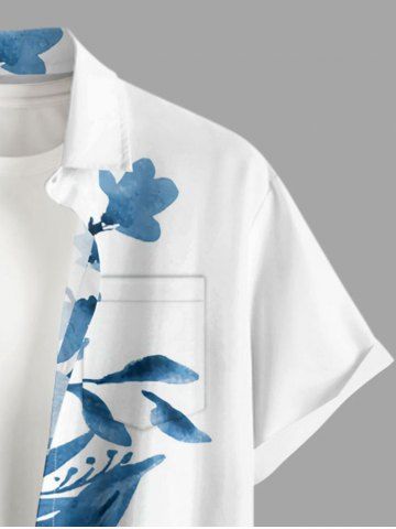 Plus Size Flowers Leaf Print Buttons Pocket Hawaii Shirt For Men - Powder Blue - 6xl