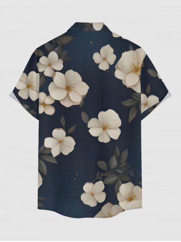 Plus Size Flowers Leaf Print Buttons Pocket Hawaii Shirt For Men - Black - L