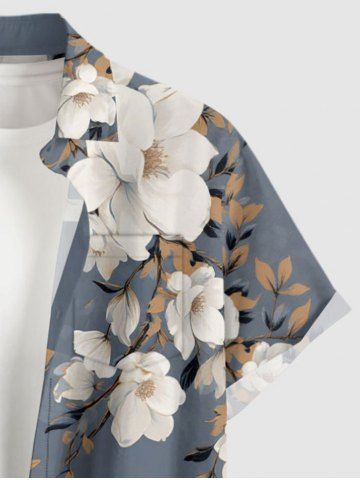 Plus Size Flowers Leaf Print Buttons Pocket Hawaii Shirt For Men - Light Gray - 5xl