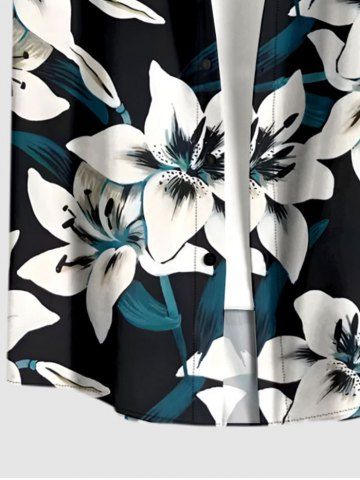 Plus Size Flowers Leaf Print Buttons Pocket Hawaii Shirt For Men - Black - Xl