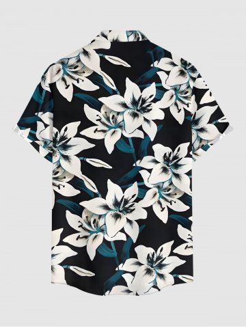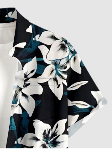 Plus Size Flowers Leaf Print Buttons Pocket Hawaii Shirt For Men - Black - 4xl
