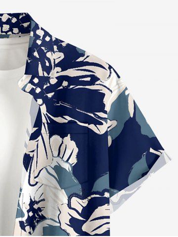 Plus Size Flowers Leaf Print Buttons Pocket Hawaii Shirt For Men - Deep Blue - 6xl