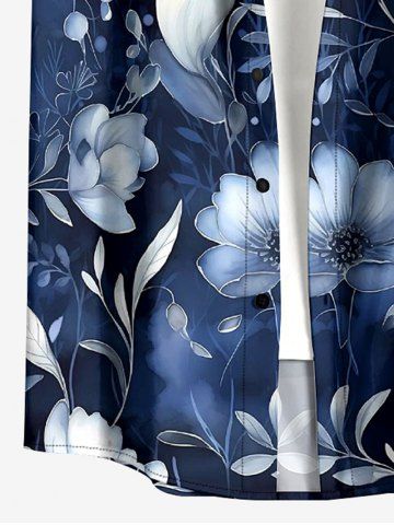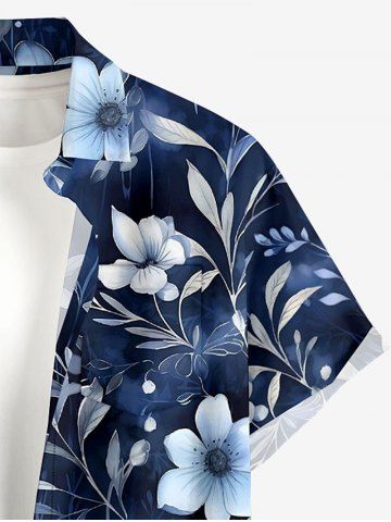 Plus Size Flowers Leaf Print Buttons Pocket Hawaii Shirt For Men - Deep Blue - 6xl