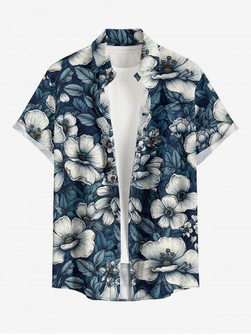 Plus Size Flowers Leaf Print Buttons Pocket Hawaii Shirt For Men - Peacock Blue - 5xl