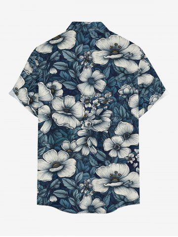 Plus Size Flowers Leaf Print Buttons Pocket Hawaii Shirt For Men - Peacock Blue - 6xl