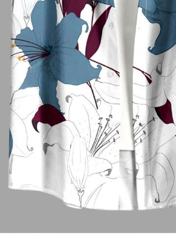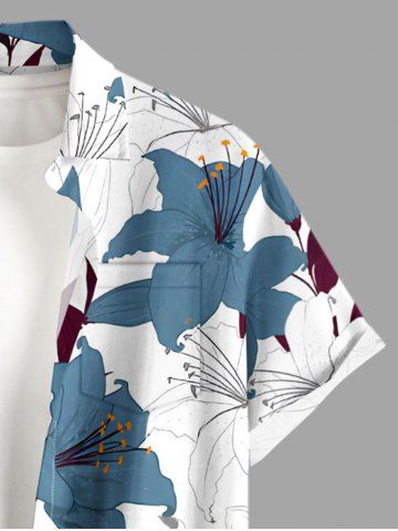 Plus Size Flowers Leaf Print Buttons Pocket Hawaii Shirt For Men - White - L