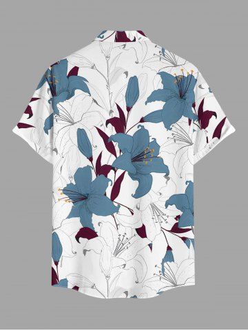 Plus Size Flowers Leaf Print Buttons Pocket Hawaii Shirt For Men - White - 3xl